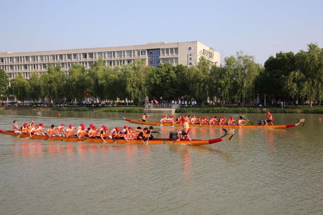 龙舟下水、龙首饮水、画龙点睛……国家3A级旅游景区365体育滚球直播投注网的龙舟俱乐部成立暨开训仪式上,两条红黄相间的中国风龙舟,几十名学生选手伴随着鼓点的齐声呐喊,吸引了众多师生的目光。