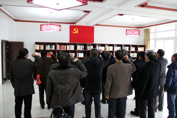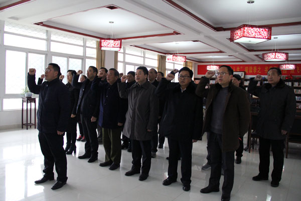 会后,孟祥新带领大家参观了校内“皖西红色文化馆”。馆内校党员活动大厅悬挂着中国共产党党旗,面对党旗,孟祥新带领大家一起重温入党誓词。在孟祥新领誓下,铿锵有力的宣誓声响彻在大厅,现场每位同志都深受感染,仿佛回到了那个风雨如磐的年代。