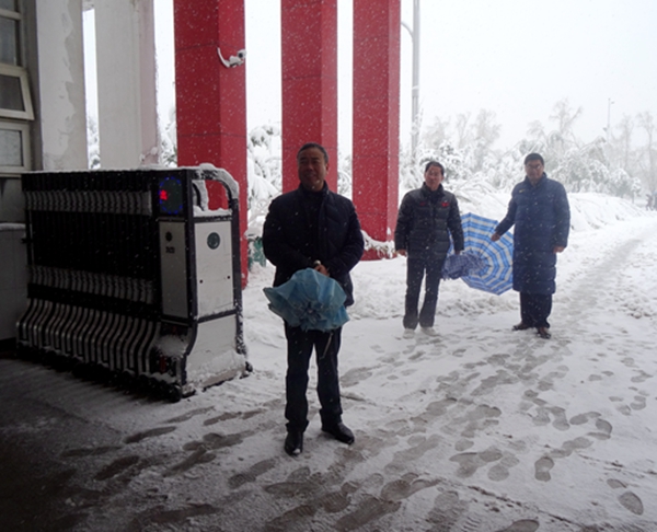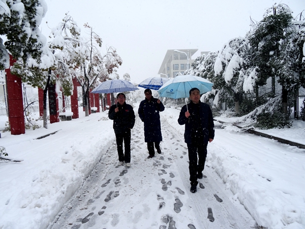 1月4日,大雪纷飞,校园积雪深厚,校党委委员、副校长、本周值周组负责人孙勇关注学生生活、出行等情况,果断采取一些措施,加强学生安全管理。