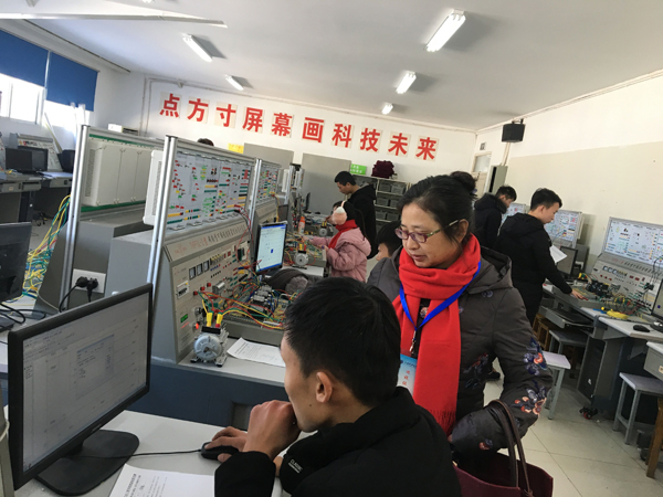 竞赛进行中,校教务处副处长汪本勤、科长熊磊等领导莅临现场指导,并对本次校级技能竞赛的成功举办给予高度评价。本次技能竞赛内容主要包括维修电工理论知识、电动机控制电路的接线与调试、PLC程序设计与调试和职业素养与安全意识四部分组成。2016级机电一体化技术、电气自动化技术专业全体学生参加了本次专业技能竞赛,机电技术系主任及相关教师担任了此次专业技能测试评委。经过评委最后评定,机电一体化技术专业李梦洋、侯双红等12人分获本次技能竞赛一、二、三等奖。