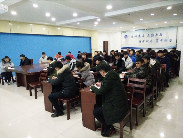 会上,汪玉奎强调诚信考试的重要意义,要求学生在考试期间要保持良好的考试纪律,希望广大同学积极认真做好复习准备,杜绝考试作弊;沈雪琪对本学期大学生素质拓展工作进行全面总结,并就寒假期间大学生社会实践有关工作进行了布置;针对学期临近结束和雨雪天气等情况,姚钢要求同学们遵守纪律,注意用电安全、饮食安全、财产安全和交通安全等。